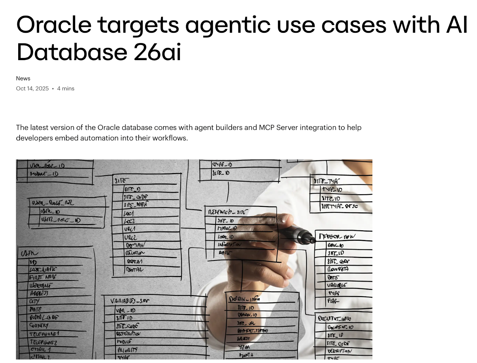 They started with Select AI, which let you query data in plain English. Now that’s evolved into Select AI Agent, where you can build actual AI agents inside the database. These agents can ask follow-up questions, reason over data, and take actions. Instead of building a lot of external application logic, the database itself becomes agent-aware.